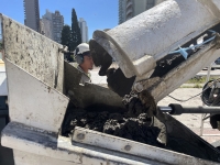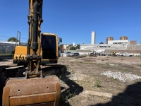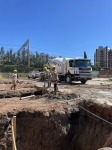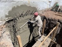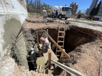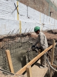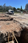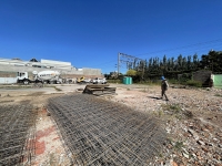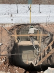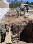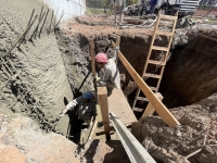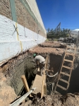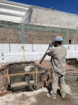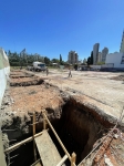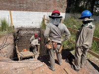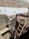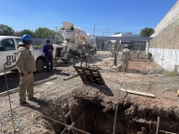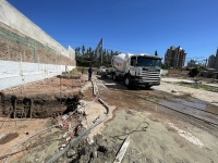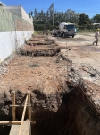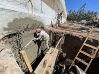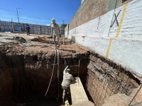 El panorama ya se ve totalmente diferente desde que ha comenzado la etapa de submuraciones. La retroexcavadora realiza las perforaciones y luego de instaladas las retìculas de acero los equipos hormigoneros completan la tarea..