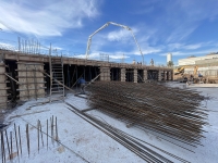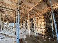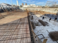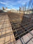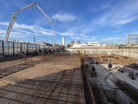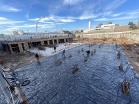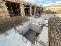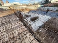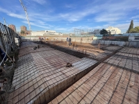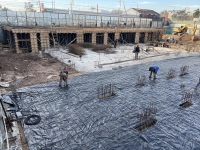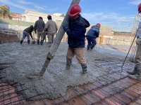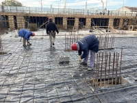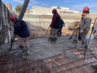En este último periodo se logró trabajar a buen ritmo, esto permitió nivelar e impermeabilizar casi la totalidad de la superficie y seguir extendiendo tanto la losa base, que albergará el estacionamiento, como la del nivel planta baja.