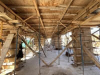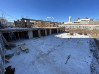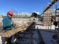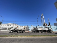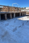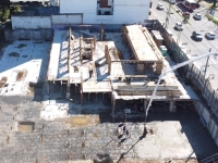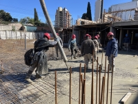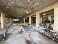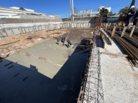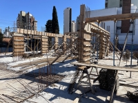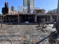 En este último mes se ha ampliado nuevamente y en forma considerable la superficie hormigonada de la losa del área de estacionamiento. Aumentó tambien la superficie de hormigón en la losa de planta baja y se hizo visible el encofrado de columnas y losa perteneciente a la primera planta.