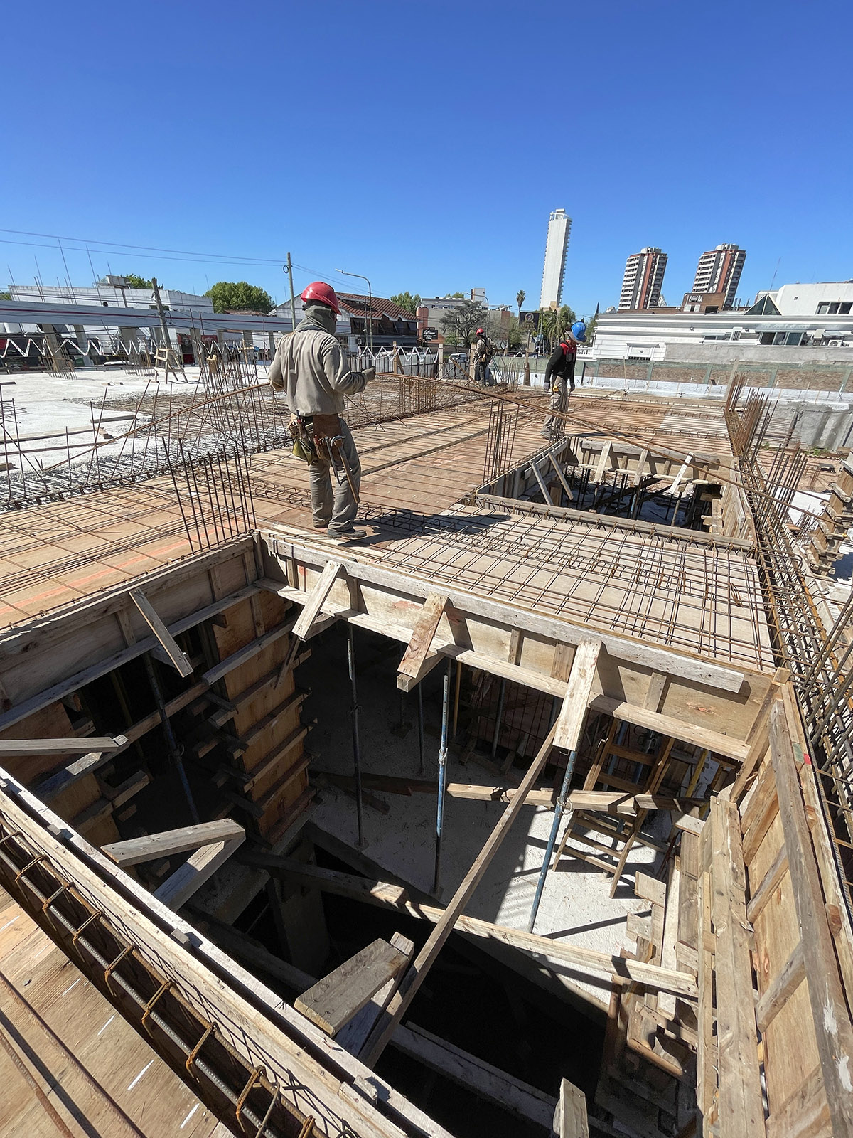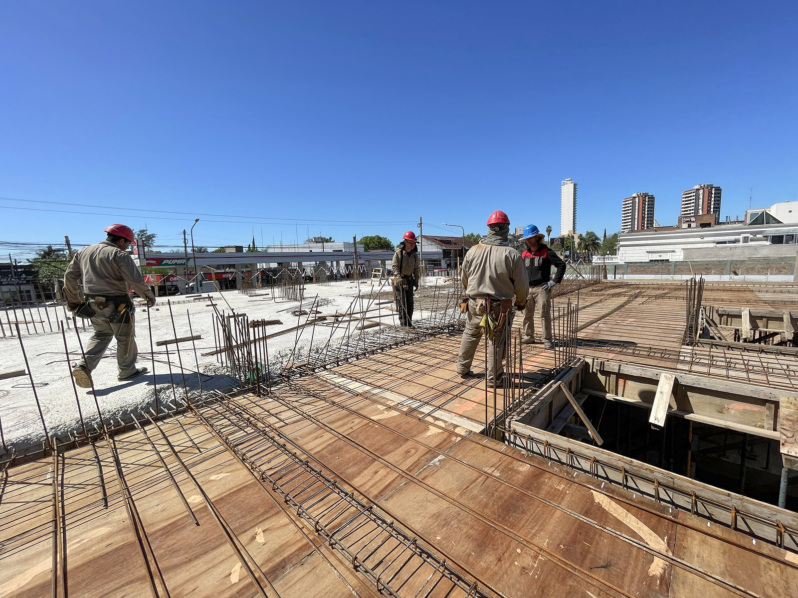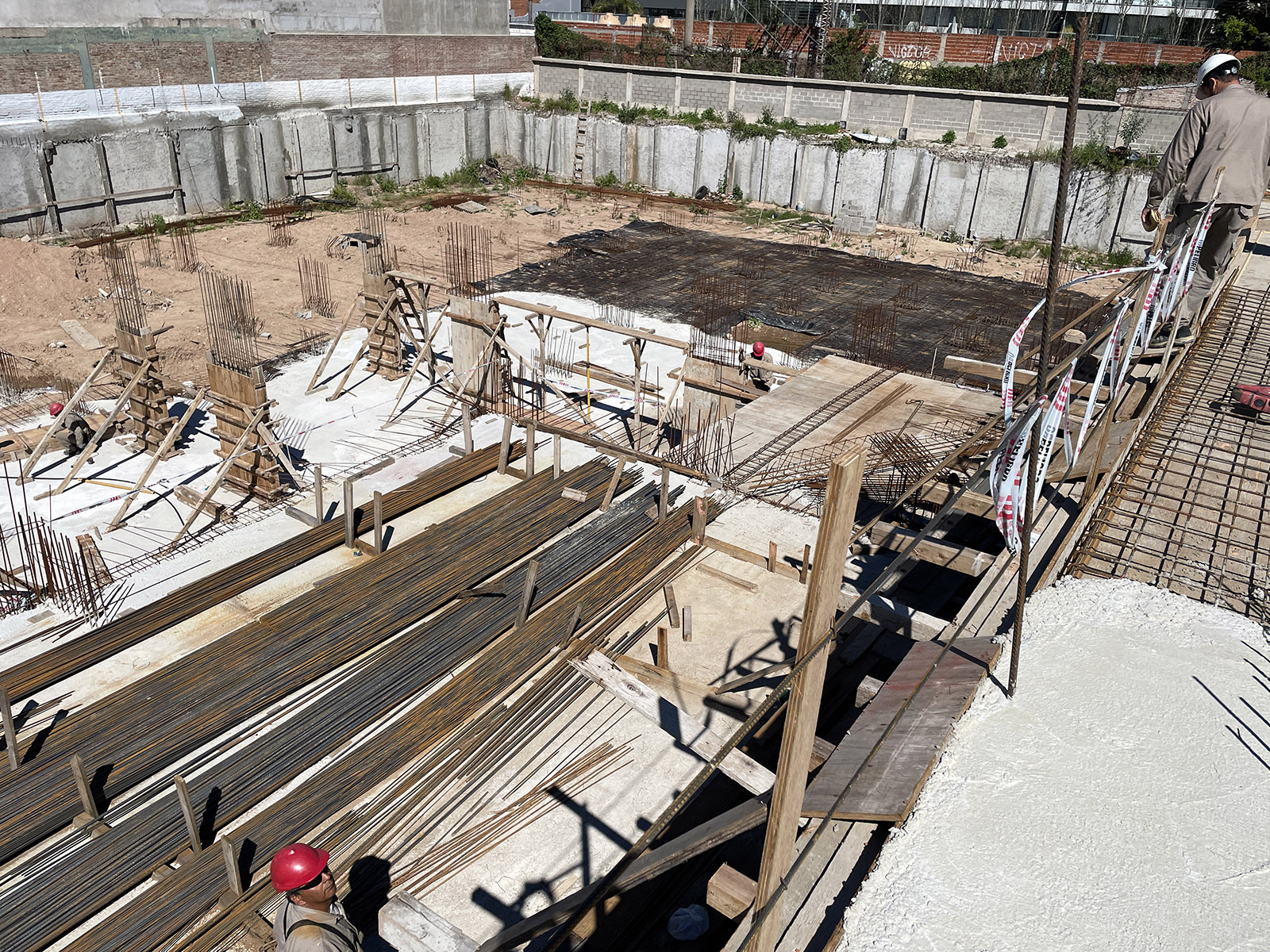 Durante este último mes se hormigonó el encofrado correspondiente a la losa de la primera planta, que ya estaba listo para recibirlo. Además, se amplió ese mismo encofrado y se avanzó en los trabajos que añadirán más metros a la losa de la planta baja.