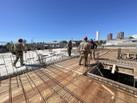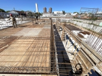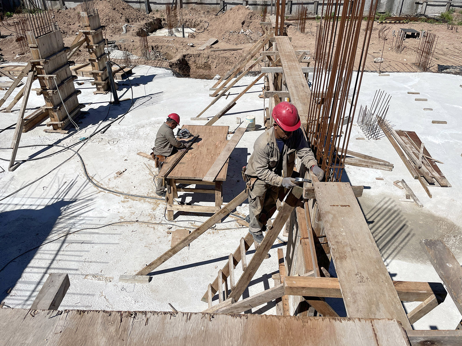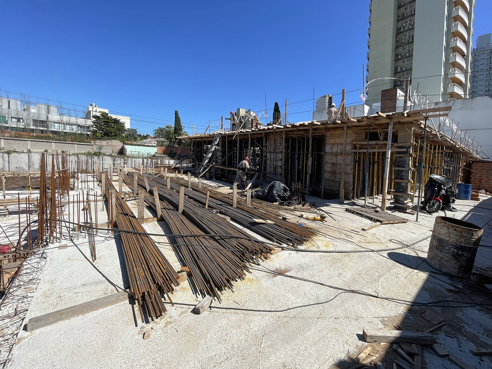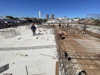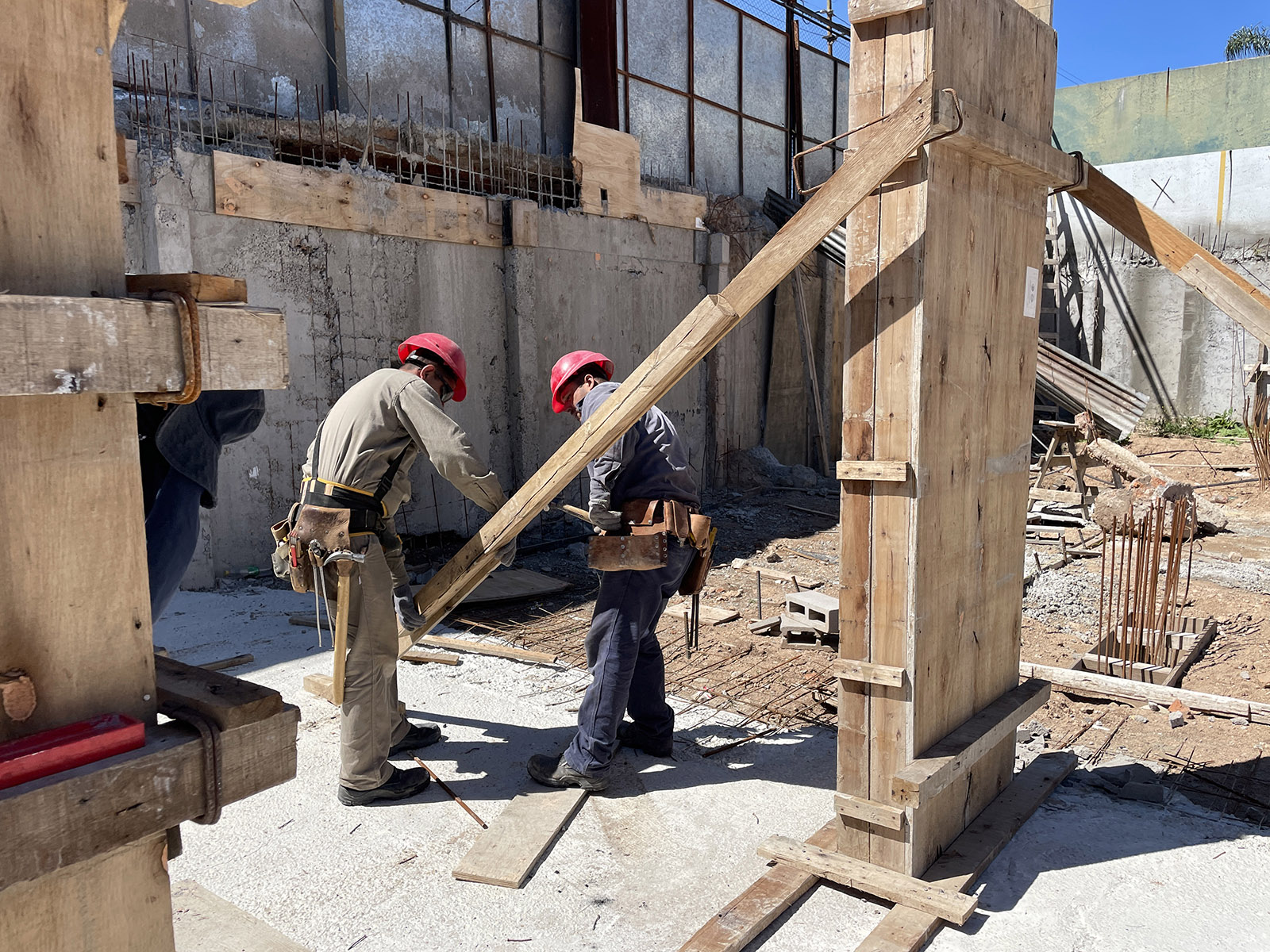 Durante este último mes se hormigonó el encofrado correspondiente a la losa de la primera planta, que ya estaba listo para recibirlo. Además, se amplió ese mismo encofrado y se avanzó en los trabajos que añadirán más metros a la losa de la planta baja.